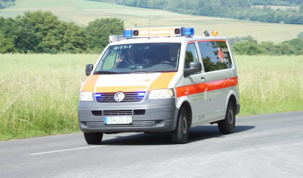 Nach Alarmierung der Einsatzkräfte trifft die DRK-Einsatzleitung 6-11-1 mit Sonderrechten (Blaulicht und Martinshorn)