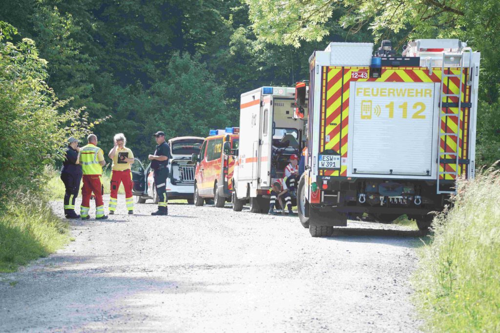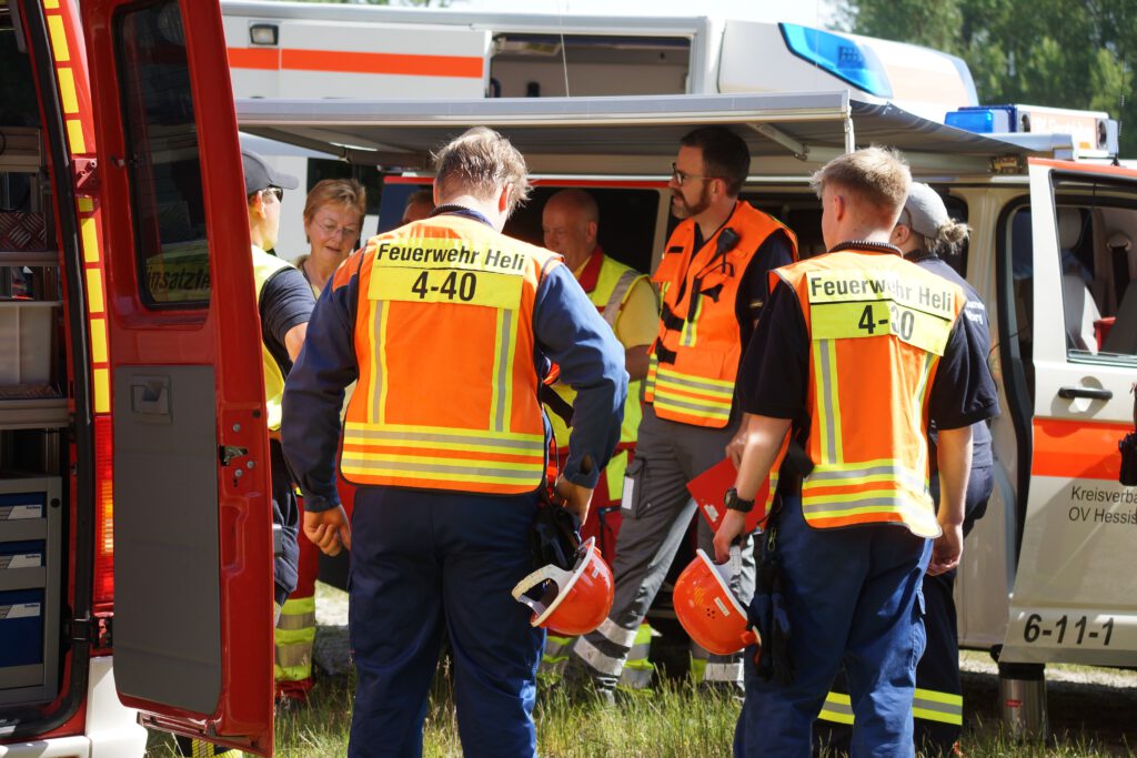 Das Deutsche Rote Kreuz ist mit RTW (Rettungstranportwagen) und die Feuerwehr mit sämtlichen benötigten Einstzfahrzeugen vor Ort.